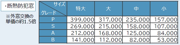 通常断熱窓:200万円/戸 断熱防犯窓:300万円/戸(戸建・戸別改修)